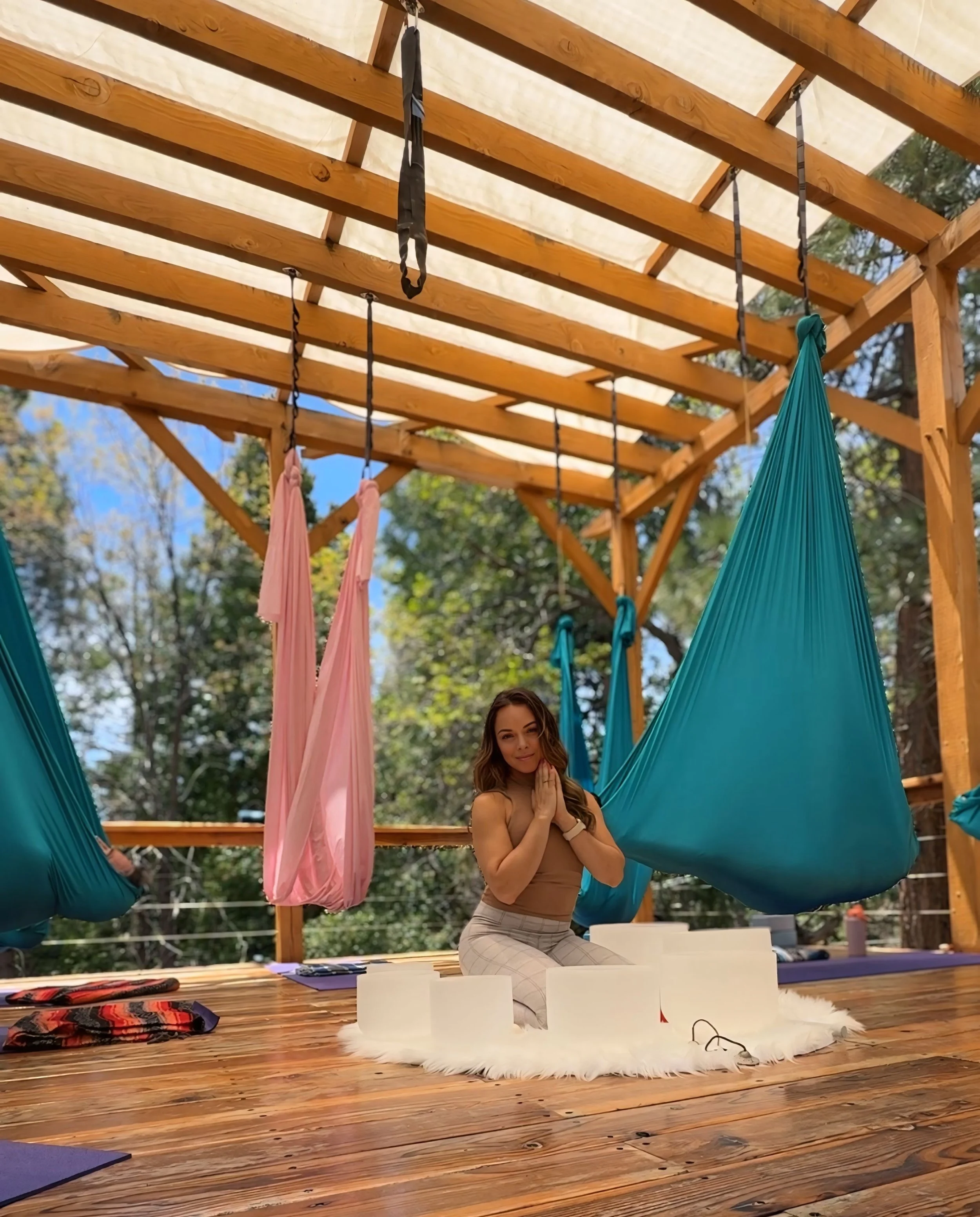 Outdoor Aerial Yoga in Idyllwild surrounded by nature
